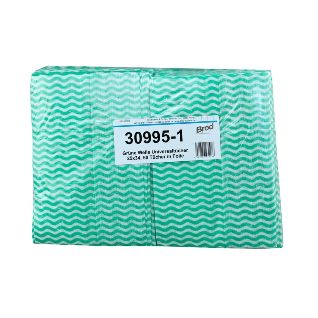 Grüne Welle, Universaltücher mit Textilcharakter, grün-weiß, 55 % Viskose, 45 % Polyester, ca. 25x34 cm, 50 Tücher