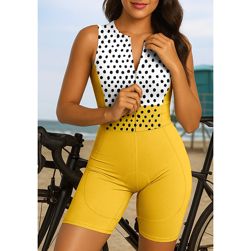 Women's Triathlon Tri Suit Cycling Jersey Set Sleeveless Yellow Bike Sports Clothing Apparel