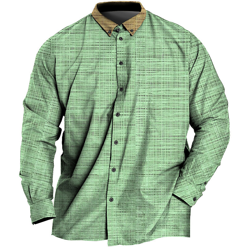 Men's Tribal Shirt Western Shirt Cowboy Shirt Long Sleeve Western Style Tribal Summer Spring Fall Shirt Collar Khaki