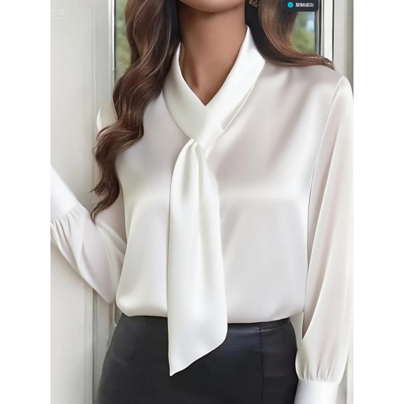 Women's Shirt Casual Long Sleeve V Neck Regular Tops Daily White Yellow Light Green Pink Sky Blue Spring Fall