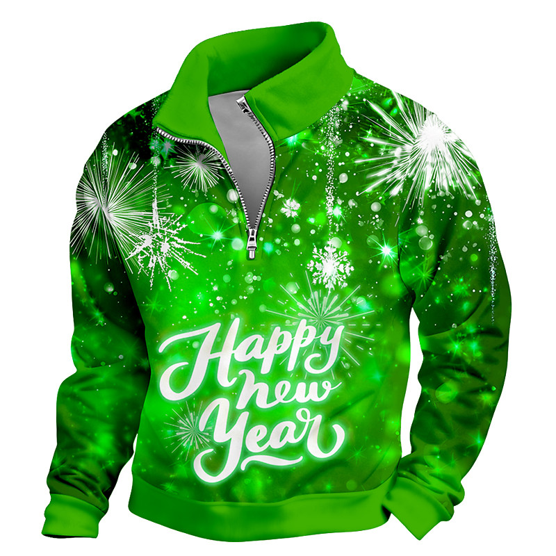 New Year Men's Happy New Year Sweatshirt Cool Daily Stylish Stand Collar Outdoor Home Gift Blue Red Purple Green Zipper Fall Winter Designer S M L XL XXL XXXL