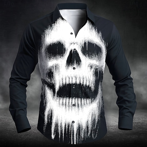 Herren Schädel Kostüme Shirt Button Up Shirt Langarm Dunkler Punk Gothic Stil Outdoor Feiertag Sommer Frühling Umschlag 3D Druck Kragen Hemden Weiß Rot Blau Grün Hellblau