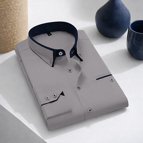Per uomo Camicia Camicia elegante Camicia button-down Semplice Quotidiano Affari Blu chiaro Bianco Rosa Blu marino Manica Lunga Collo ripiegato Tutte le stagioni Abbigliamento Patchwork