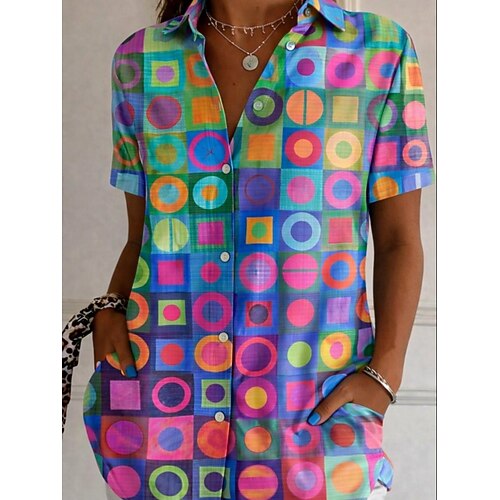 Damen Hemd Langarm Button-Down Bluse Grafik 3D Vintage Tropisch Alltag Kurzarm Hemdkragen Reguläre Tops Alltag Weiß Gelb Rosa Blau Grün Sommer Frühling