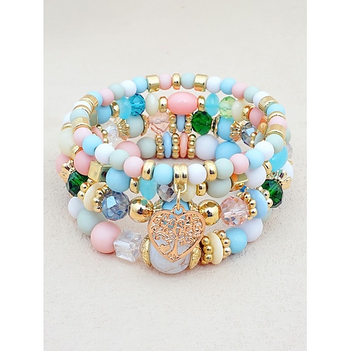 Set di braccialetti boho con albero della vita per donna, alla moda, con nappe, perline di legno, catena elastica, gioielli alla moda per feste da ragazza