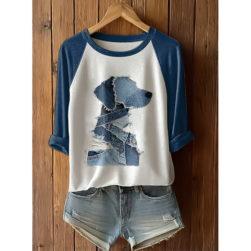 Women's T Shirt Graphic Animal Dog Vintage Stylish Classic Long Sleeve Crew Neck Long Tops Daily Print Blue Light Blue Summer Spring