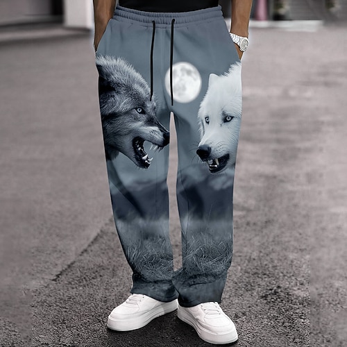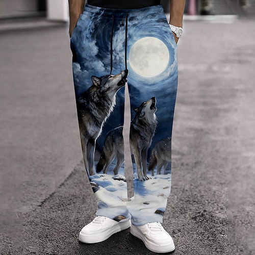 Per uomo Animale Lupo chiaro di luna Pantaloni da tuta Pantaloni Pantaloni casual Misura del girovita medio Vintage Retrò All'aperto Caccia Allenamento Coulisse elastica in vita Pantaloni a gamba