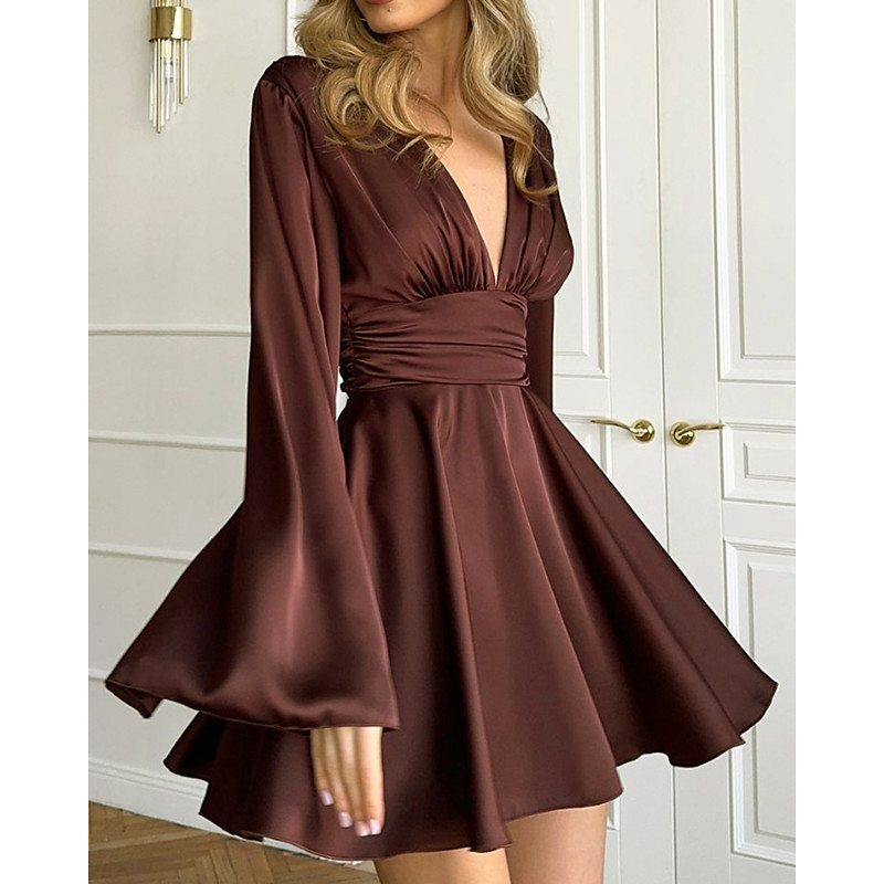 Women's Mini Dress Sheath Dress Casual Daily Regular Fit Plain Long Sleeve V Neck Black Apricot Spring Fall Winter