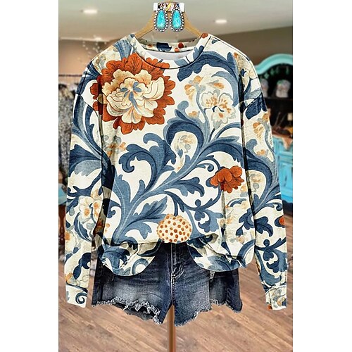 Per donna Felpa Pullover Floreale Grafico Geometrico Caldo Moda Western Manica Lunga Girocollo Top Regolari Streetwear Abbigliamento Quotidiano Casuale Stampato Blu Nero Fucsia Arancione Verde