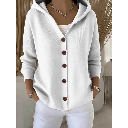Per donna Felpa Cardigan Elegante Moda Streetwear Colore Puro Con Cappuccio Lavorato a maglia Manica Lunga Top Regolari Maglia All'aperto Quotidiano Weekend Nero Bianco Autunno Inverno