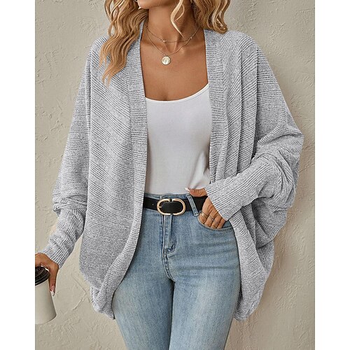 Per donna Felpa Cardigan Streetwear Casual Tinta unica Scollo a V Lavorato a maglia Manica Lunga Top Regolari Maglia Quotidiano Ferie Uscire Blu Nero Autunno Inverno