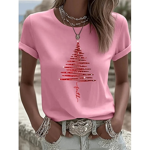 Natale Per donna Maglietta Grafico Natale Vintage Elegante Classico Manica Corta Girocollo Top Regolari Quotidiano Stampato Nero Bianco Rosa Arancione Verde Estate Primavera Autunno Inverno