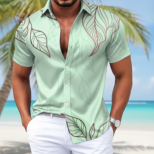 Per uomo Albero di Cocco Piante Tropicali Camicia Camicia hawaiana estiva Camicia Aloha Manica Corta Moda Streetwear Designer All'aperto Vacanza Streetwear Estate Primavera Collo alla coreana Stampato