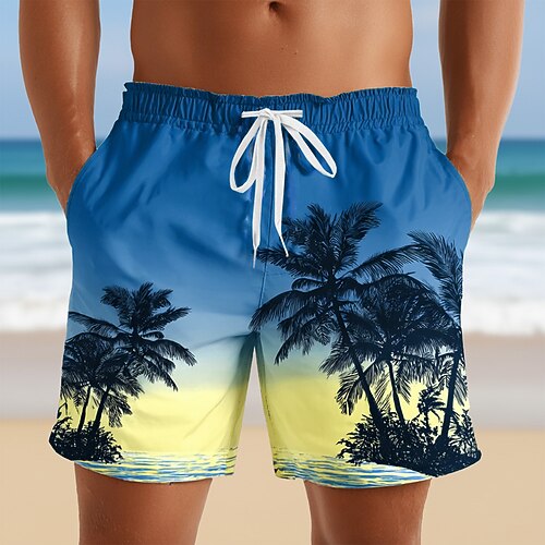 Per uomo Albero di Cocco Colore sfumato Piante Tropicali Costumi da bagno Pantaloncini da mare Pantaloncini da Surf Misura del girovita medio Hawaiano Vacanza al Mare Tasche Laterali fodera in rete