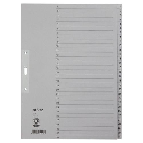 Leitz Register 1231 DIN A4 Überbreite (volle Höhe) Grau 31-teilig 3-fach Papier 1 bis 31