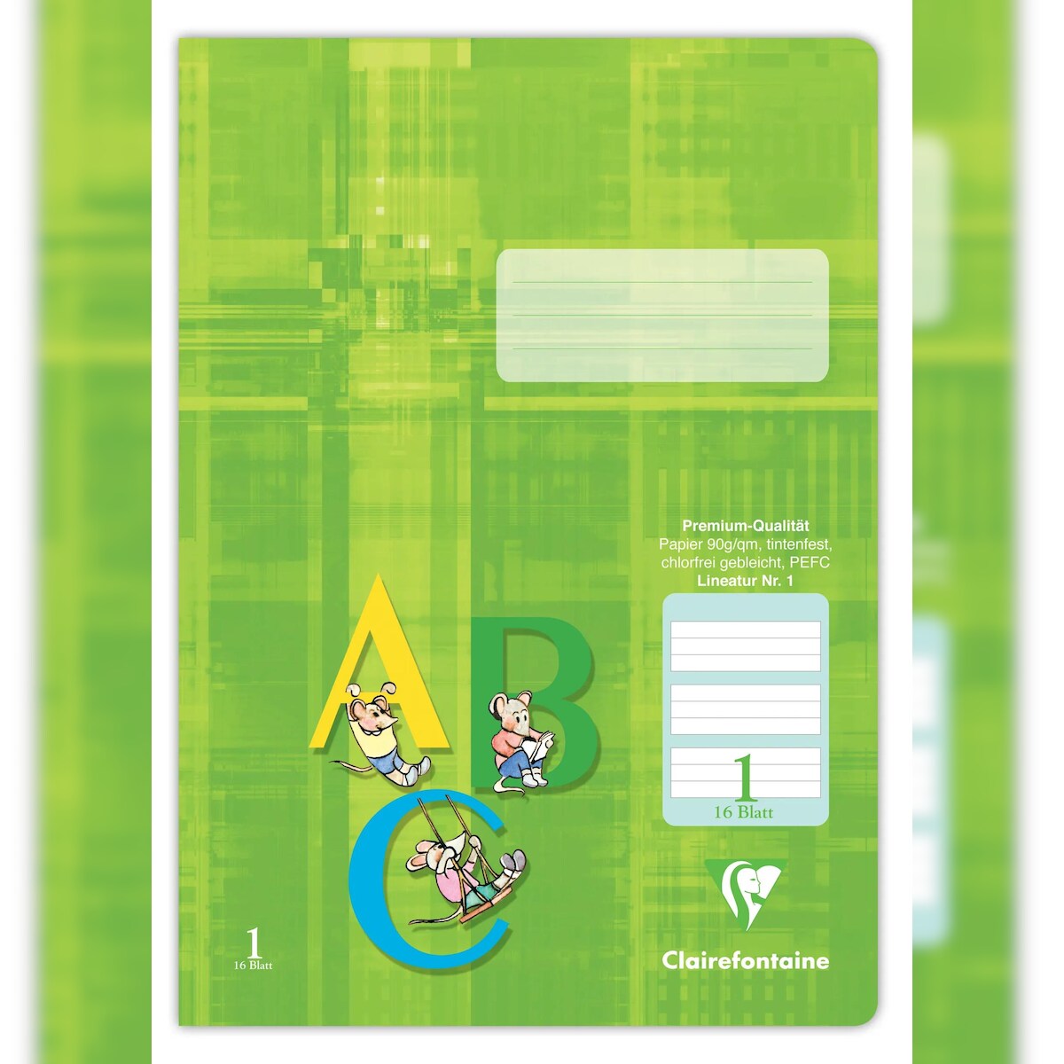 Clairefontaine 25x Schulheft Clairefontaine, DIN A4, 16 Blatt, 90g, grüne Lineatur 1 liniert für 1. Schuljahr - Zitrusgrün 331051C
