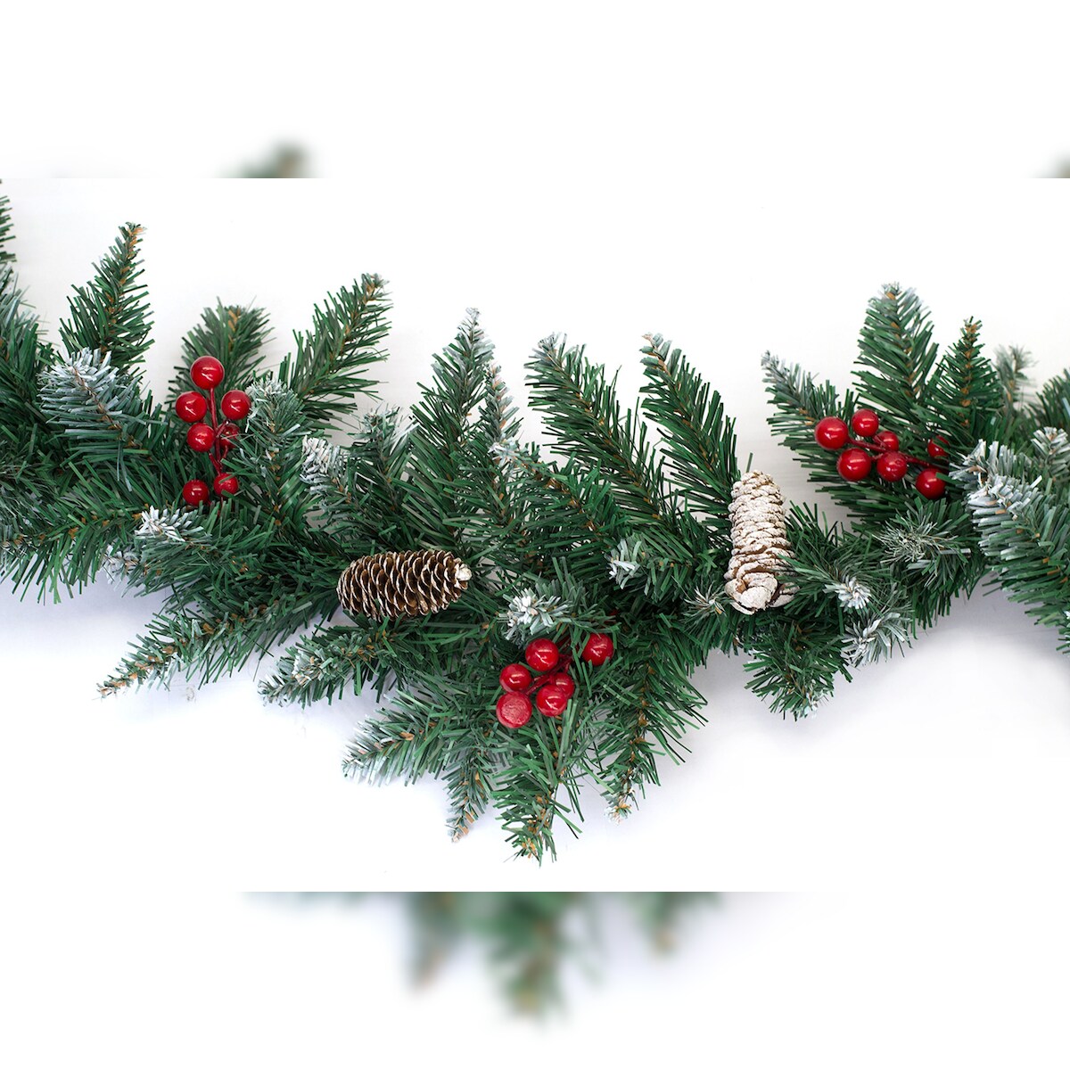 Creativery 2m künstliche Tannengirlande ca. 25cm beschneit mit roten Beeren Zapfen Schnee dekoriert für Innen Außen Outdoor Indoor Weihnachtsgirlande Dunkelgrün
