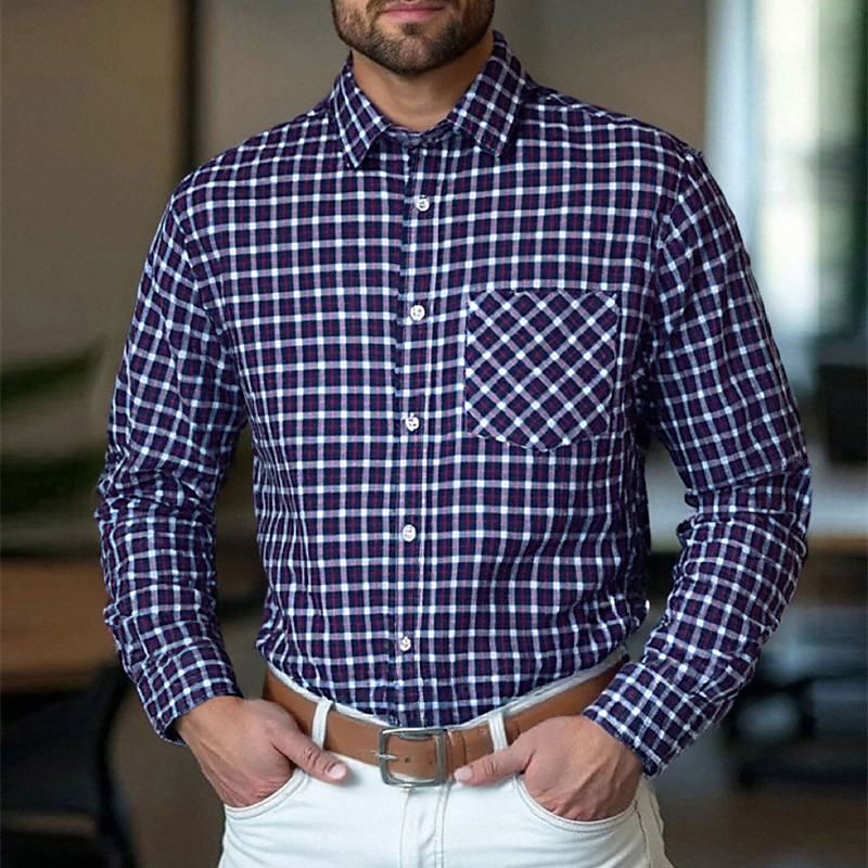 Men's Shirt Dress Shirt Button Up Shirt Plaid Wedding Daily Navy Blue Blue Light Grey Long Sleeve Turndown Spring Fall Clothing Apparel Front Pocket