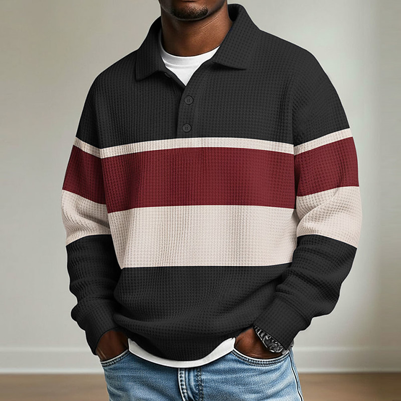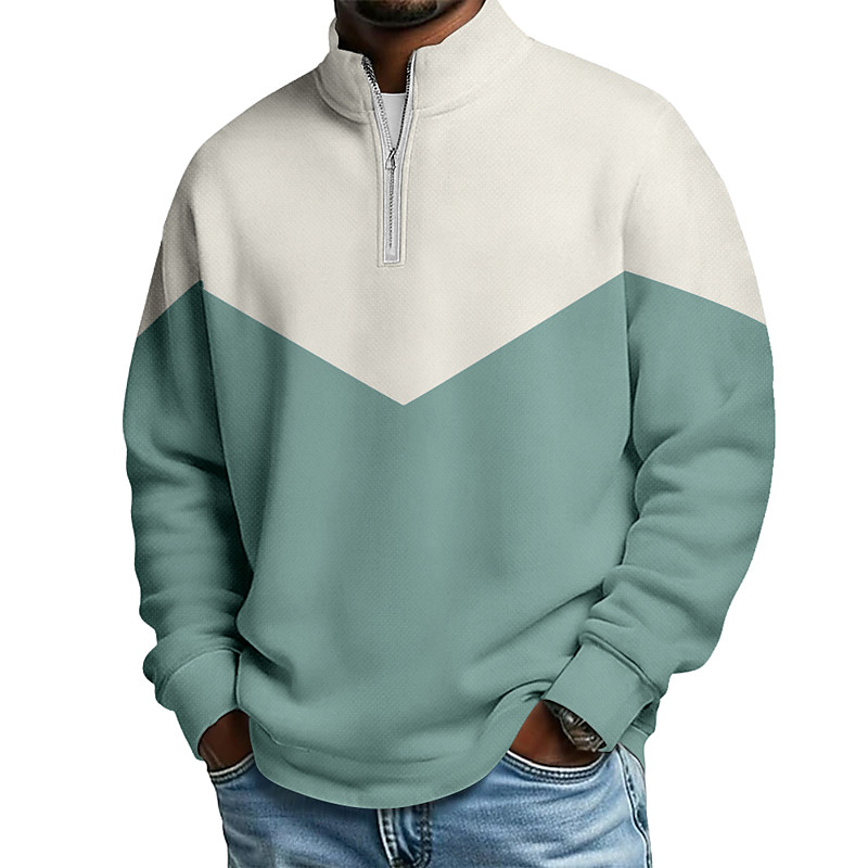 Men's Color Block Zip Polo Shirts Long Sleeve Polo Shirts Grandad Collar Casual School Athleisure Holiday Daily Wear 3D Print Quarter Zip Polo Spring Fall Blue Navy Blue Brown