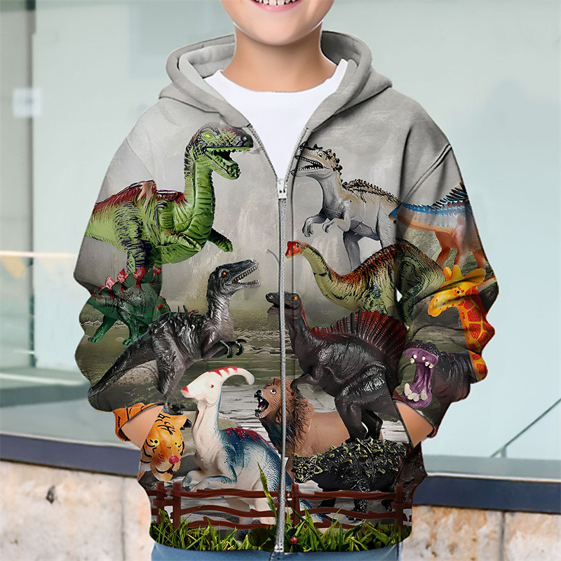 Boys 3D Dinosaur Hoodie Coat Outerwear Long Sleeve Spring Fall Adorable Sport Kids 4-12 Years Zip Street Daily Regular Fit