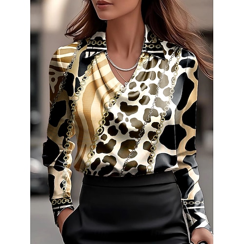 Per donna Camicia da lavoro Grafico Leopardo Elegante Casual Manica Lunga Colletto a Camicia Top Regolari Lavoro Abbigliamento da sera Quotidiano Nero Bianco Rosso Oro Estate Autunno Inverno