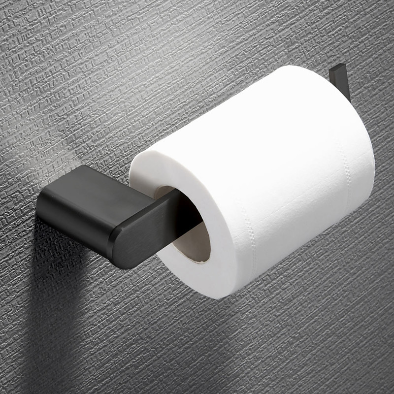 Bathroom Accessory Stainless Steel Include Robe Hook, Towel Bar, Towel Holder, Toilet Paper Holder with Shelf for Phone and Wash Supplies, Matte Black Bathroom
