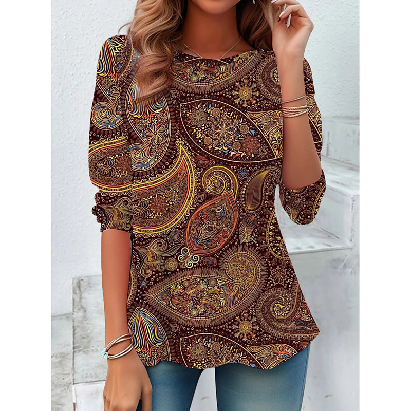 Women's T Shirt Graphic Fashion Casual Long Sleeve Crew Neck Regular Tops Daily Weekend Vacation Wear Print Brown Summer Spring Fall