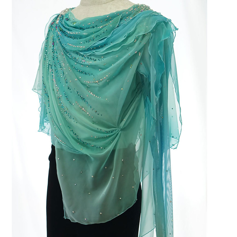 Figure Skating Top Men's Boys' Ice Skating Tops Green Patchwork Spandex Mesh High Elasticity Training Competition Skating Wear Classic Crystal / Rhinestone Long Sleeve Ice Skating Figure Skating