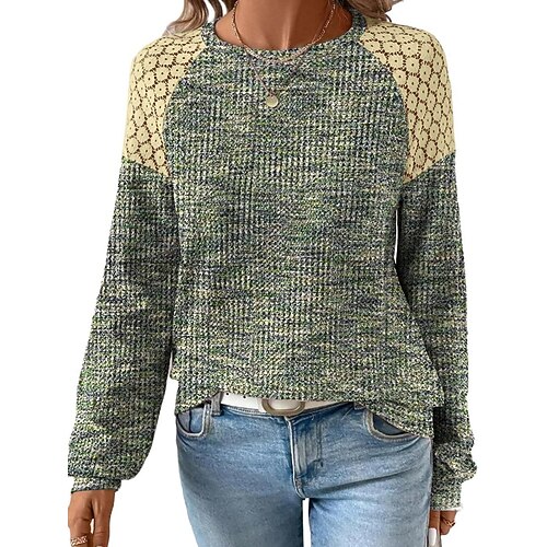Per donna Blusa Tinta unica Vintage Tropicale Elegante Manica Lunga Girocollo Top Regolari Quotidiano Pizzo Patchwork Bianco Rosa Verde Cachi Estate Primavera Autunno Inverno