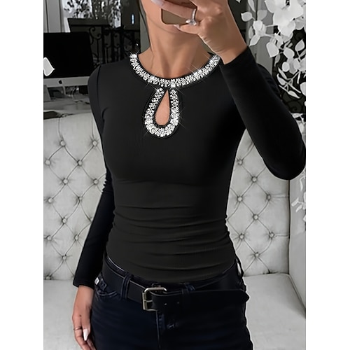 Per donna Blusa Tinta unica Elegante Casual Manica Lunga Girocollo Top Regolari Quotidiano Patchwork Glitter Nero Vino Blu Verde Primavera Autunno Inverno
