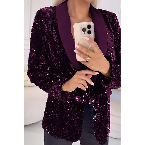 Per donna Blazer Giacca Casual Confortevole Strass Moda Casual Tinta unica Feste Streetwear Abbigliamento quotidiano Uscire Regolare Bavero classico Vestibilità regolare Manica Lunga Capispalla Blu