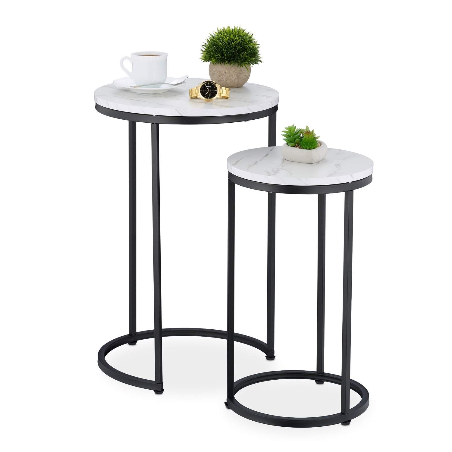 Marmorinäköiset sisäkkäiset pöydät – 2 kpl sarja, metallijalat
