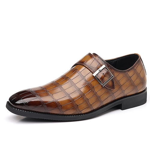 mocassini monk strap da uomo con stampa coccodrillo marrone – scarpe classiche con fibbia per ufficio, banchetti e occasioni serali