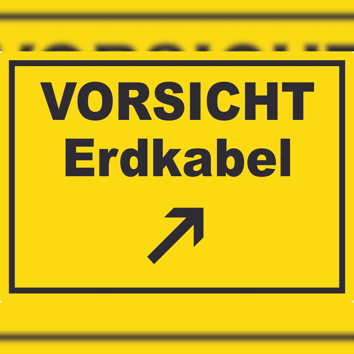 HB-Druck Vorsicht Erdkabel mit Richtungspfeil rechts oben Aufkleber A4 (210x297mm)