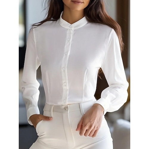 Per donna Blusa Tinta unica Elegante Casual Manica Lunga Collo alto Top Regolari Quotidiano Con perline Nero Giallo Rosa Rosso Marrone Primavera Autunno Inverno