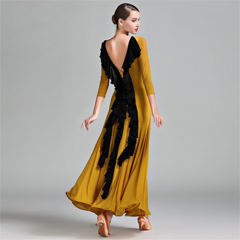 Green Ballroom Dance Dress for Women - Long Sleeve A-Line Gown for Competitions, Latin, and Dance Events - Flowing Skirt