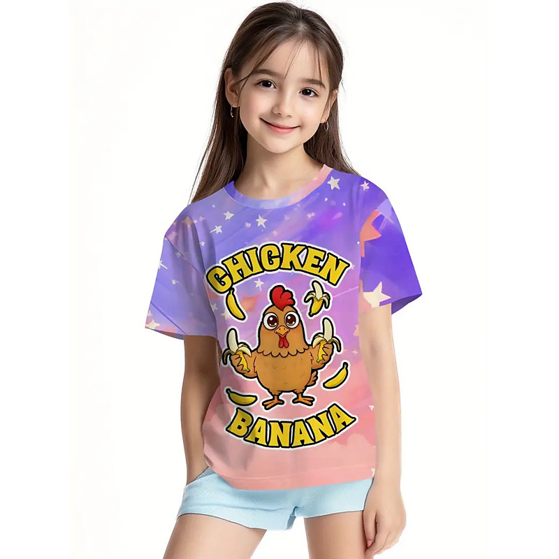 Girls' 3D Chicken and Banana Graphic T shirt Tee Short Sleeve 3D Print Summer Spring Sports Fashion Streetwear Kids 4-12 Years Crew Neck Outdoor Casual Daily Regular Fit
