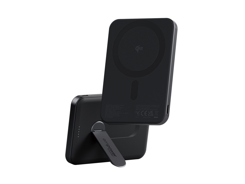 PanzerGlass empower by ® empower Bank w. Spin Stand | 5000mAh | Space Black, Apple, Apple - iPhone 17/16/15/14/13/12, Qi enabled smartphones, Airpods Pro Gen 2/3, Airpods Gen3, Tørr påføring, Sort, 1 stykker