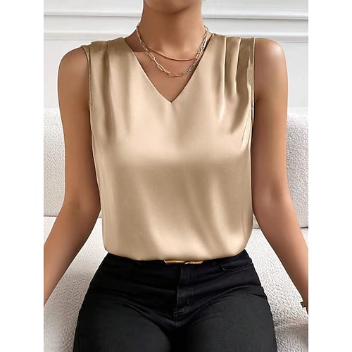 canotta in raso da donna nera bianca rossa tinta unita spalle scoperte moda da strada quotidiana scollo a V vestibilità regolare s