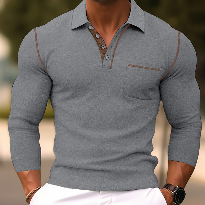 Men's Business Polo Golf Shirt Casual Sports Lapel Long Sleeve Fashion Basic Plain Button Spring Fall Regular Fit Dark Brown Dark Grey Black Burgundy Navy Blue Olive Business Polo