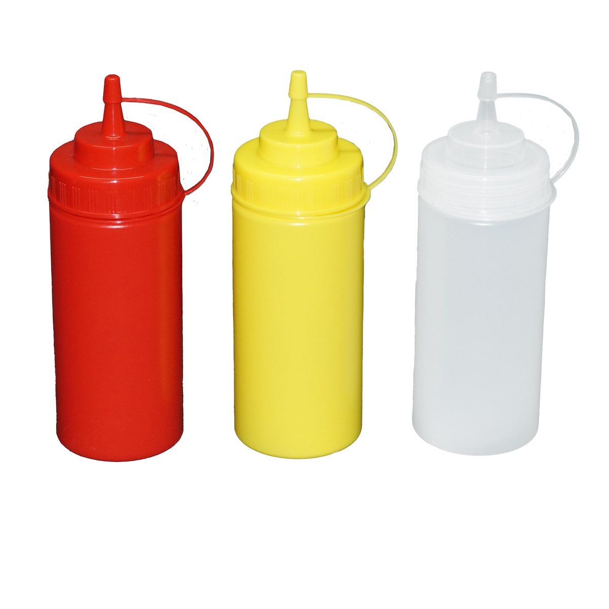GVK ECO Je 1 Stück rot, gelb, transparente Quetschflaschen 0,49 Liter Dosierflasche Spenderflasche Dressingflasche