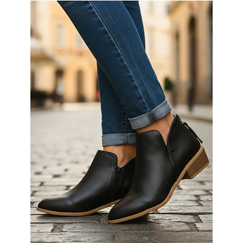 Women's Vintage Coffee Faux Leather Booties with Side Zipper – Comfortable Ankle Boots for Casual Wear, Outdoor Walks and Everyday Outfits