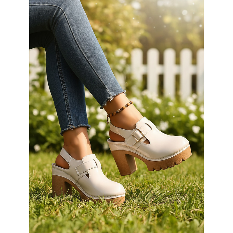 Women's Faux Leather Casual Wide Fit Shoes—Colorblock Comfort Barefoot Shoes, Breathable Cutouts, Adjustable Buckle Strap, Ideal for Garden Strolls, Weekend Outings and Daily Wear