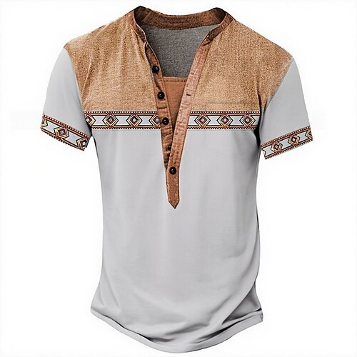 Per uomo Tribale Etnico Maglietta Maglia Henley Manica Corta Designer Essenziale Etnico All'aperto Casuale Quotidiano Estate azzurro cielo Nero Verde chiaro Blu scuro Blu chiaro Henley Maglietta