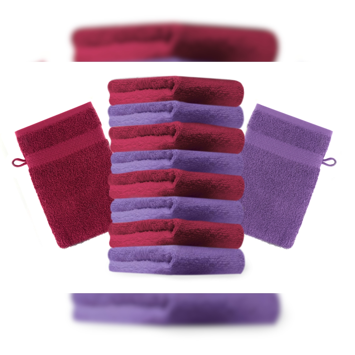Betz 10 Stück Waschhandschuhe PREMIUM 100% Baumwolle Waschlappen Set 16x21 cm Farbe dunkelrot und lila