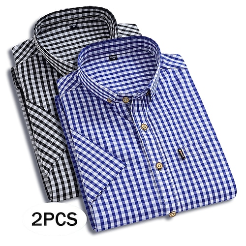 Per uomo Camicia Camicia elegante Camicia button-down Plaid Casuale Quotidiano Blu scuro nero Blu scurorosso BluRosso Nero / Rosso Manica Corta Collo ripiegato Estate Abbigliamento Patchwork