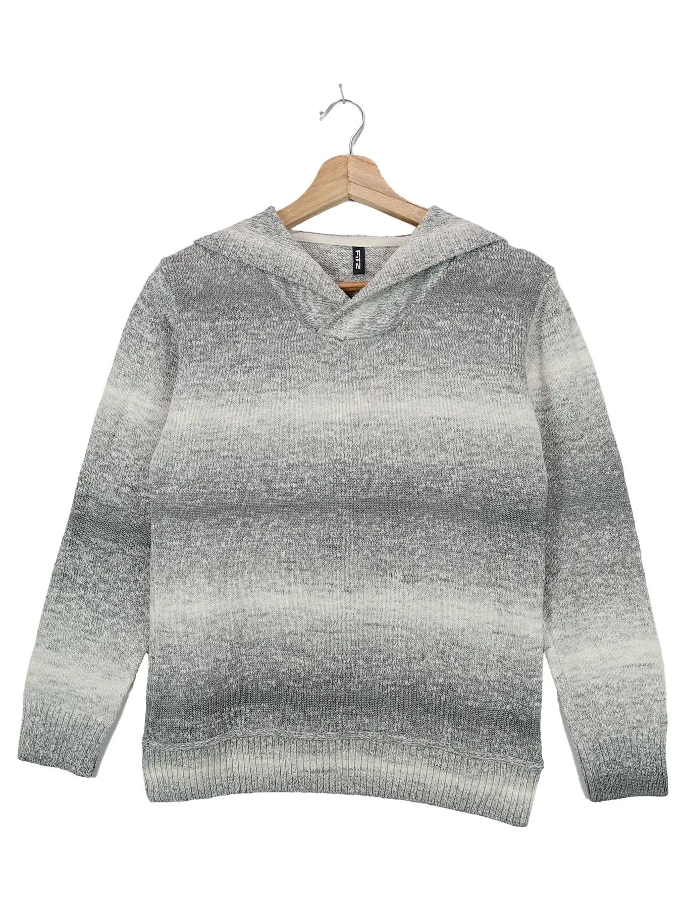 FITZ Kinder Pullover 152/158 Weiß Grau Schwarz Kapuze Baumwolle