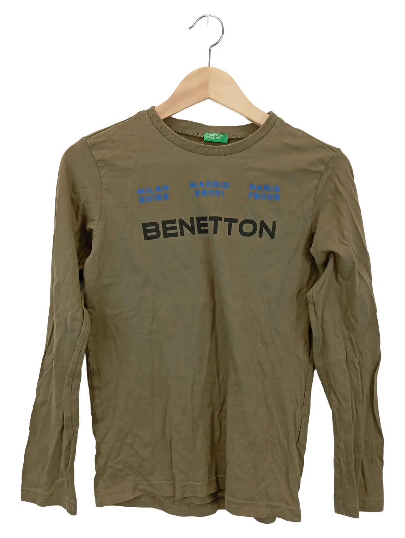 UNITED COLORS OF BENETTON BENETTON Langarmshirt Gr. 160 Kinder Grün Städte Schriftzug