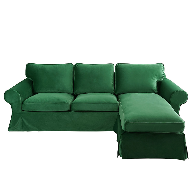 EKTORP 3-Seater Sofa with Chaise Longue Cover, Solid Color Quilted Velvet Slipcover, Durable Non-Slip Protector for Living Room