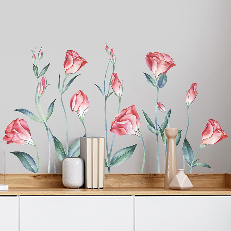 Tulip Wall Sticker Blue Tulip Flower Design Removable Wall Decal For Bedroom Dining Room Living Room Home Decor Creative Botanical Background Art Decorative Supplies